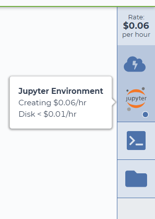 You will be returned to the main page after clicking "Create". You will notice two new icons in your right-hand side bar as the environment is being created.