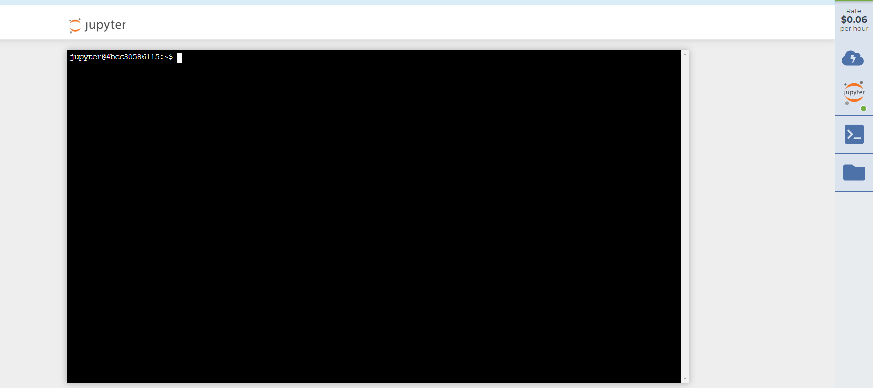 The open terminal will appear in a new tab in your browser and will look similar to this: