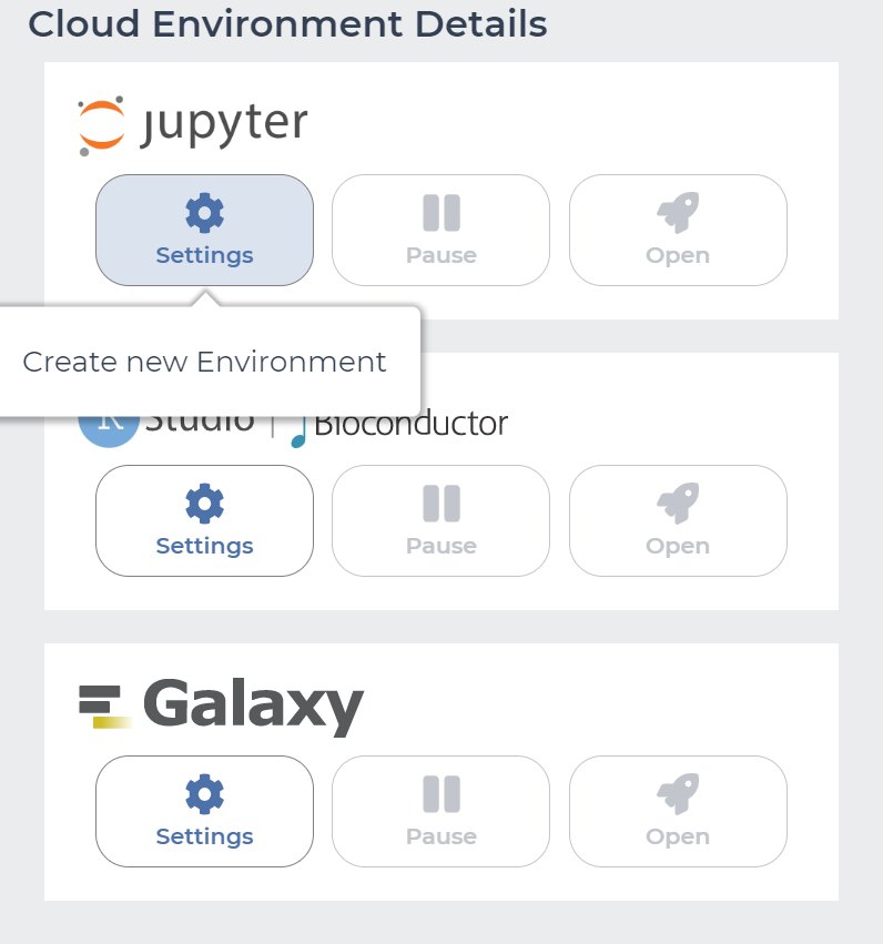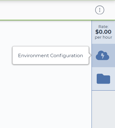 Select the "Environment Configuration" cloud icon on the right side of the workspace dashboard tab