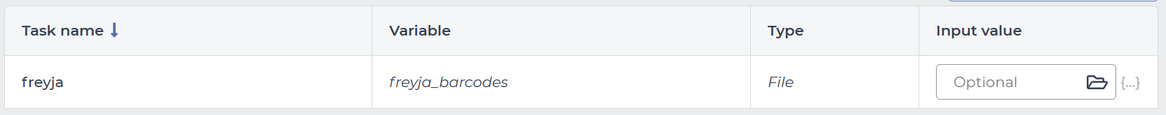 freyja_fastq freyja_barcodes File Custom barcode file. Does not need to be provided if update_db is true if the freyja_pathogen is provided. Optional